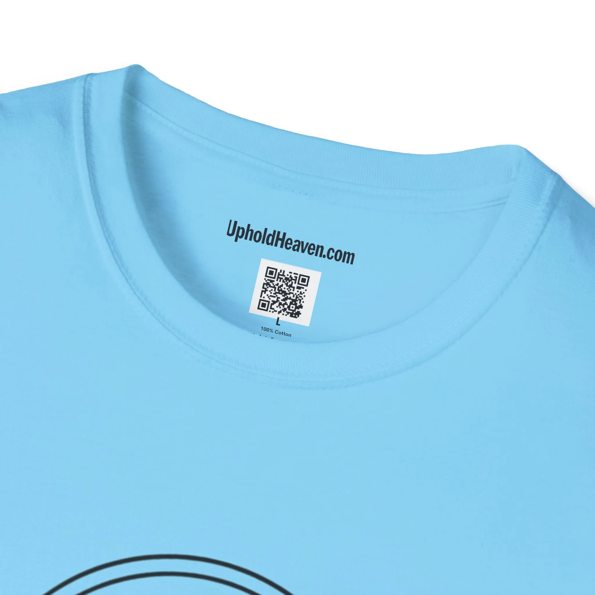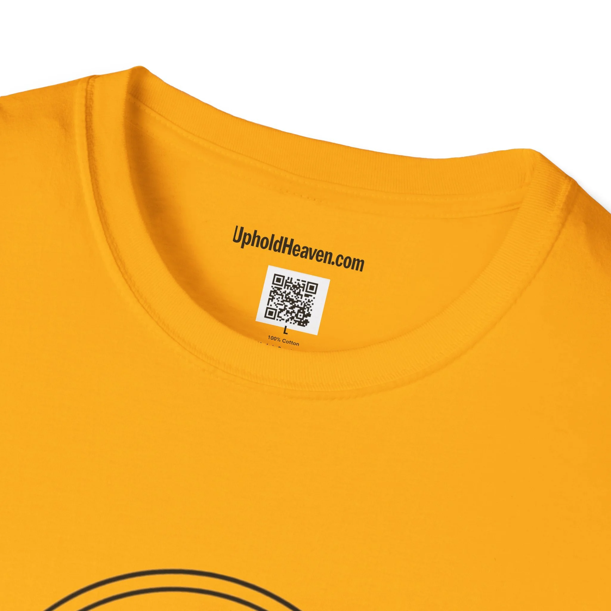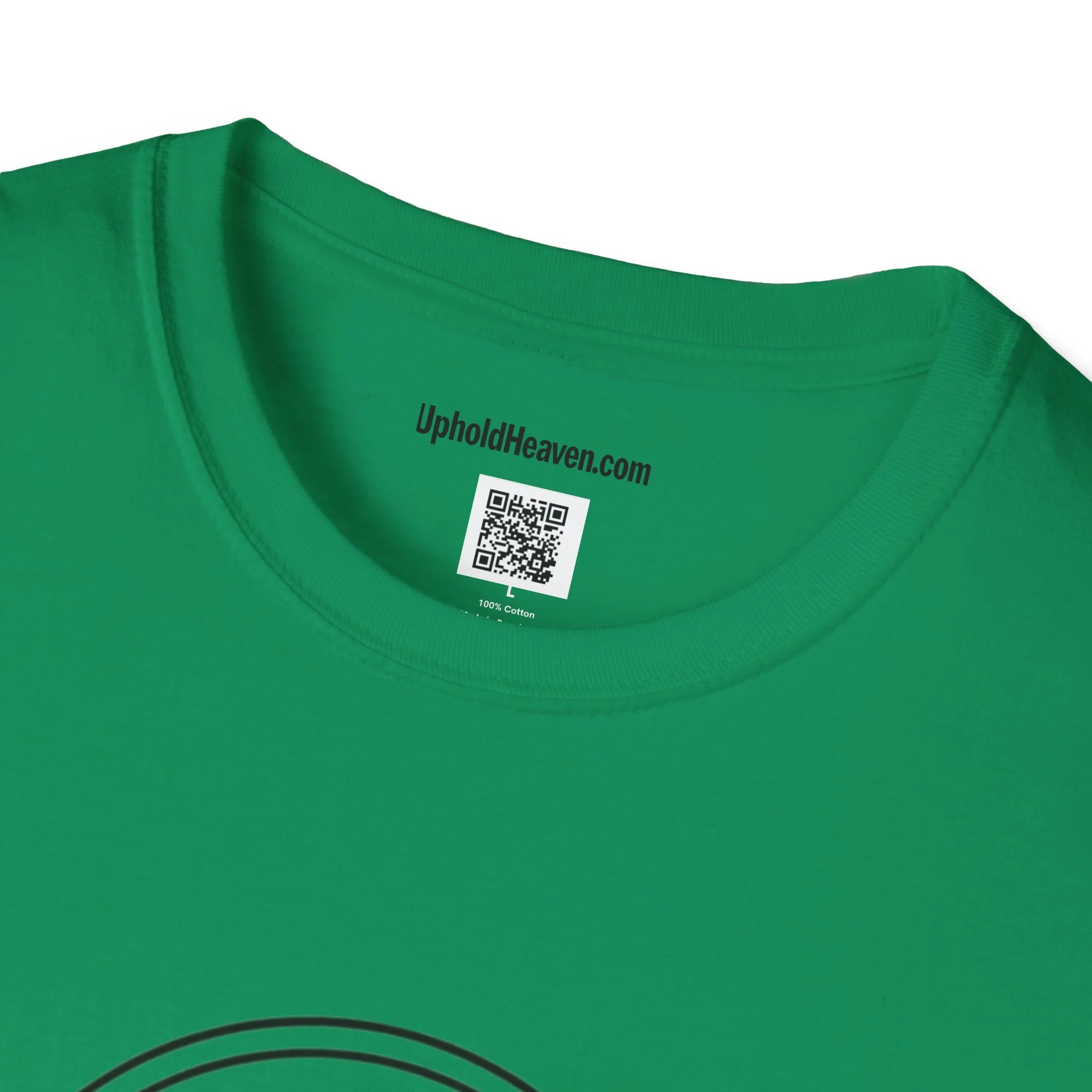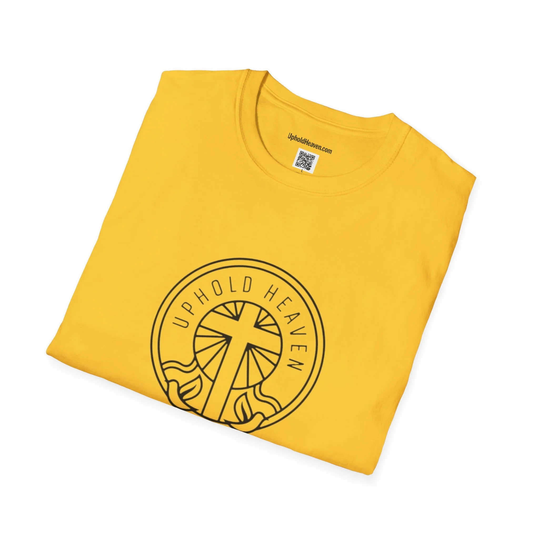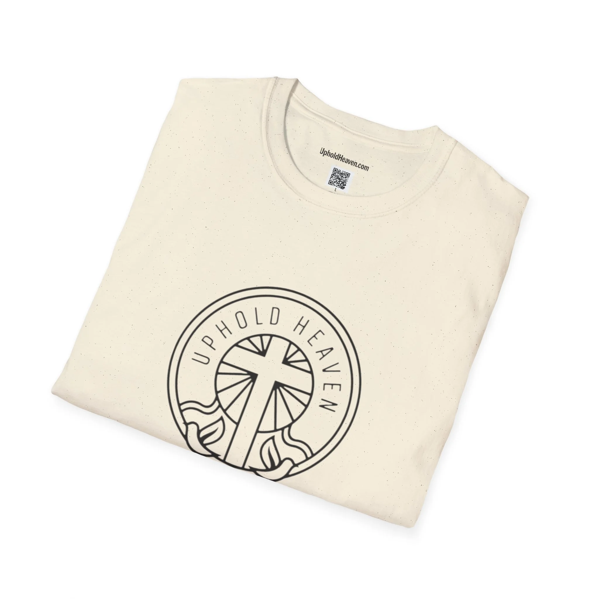 - Front emblem with minimalist cross; bold, multi-color back print with Gospel message