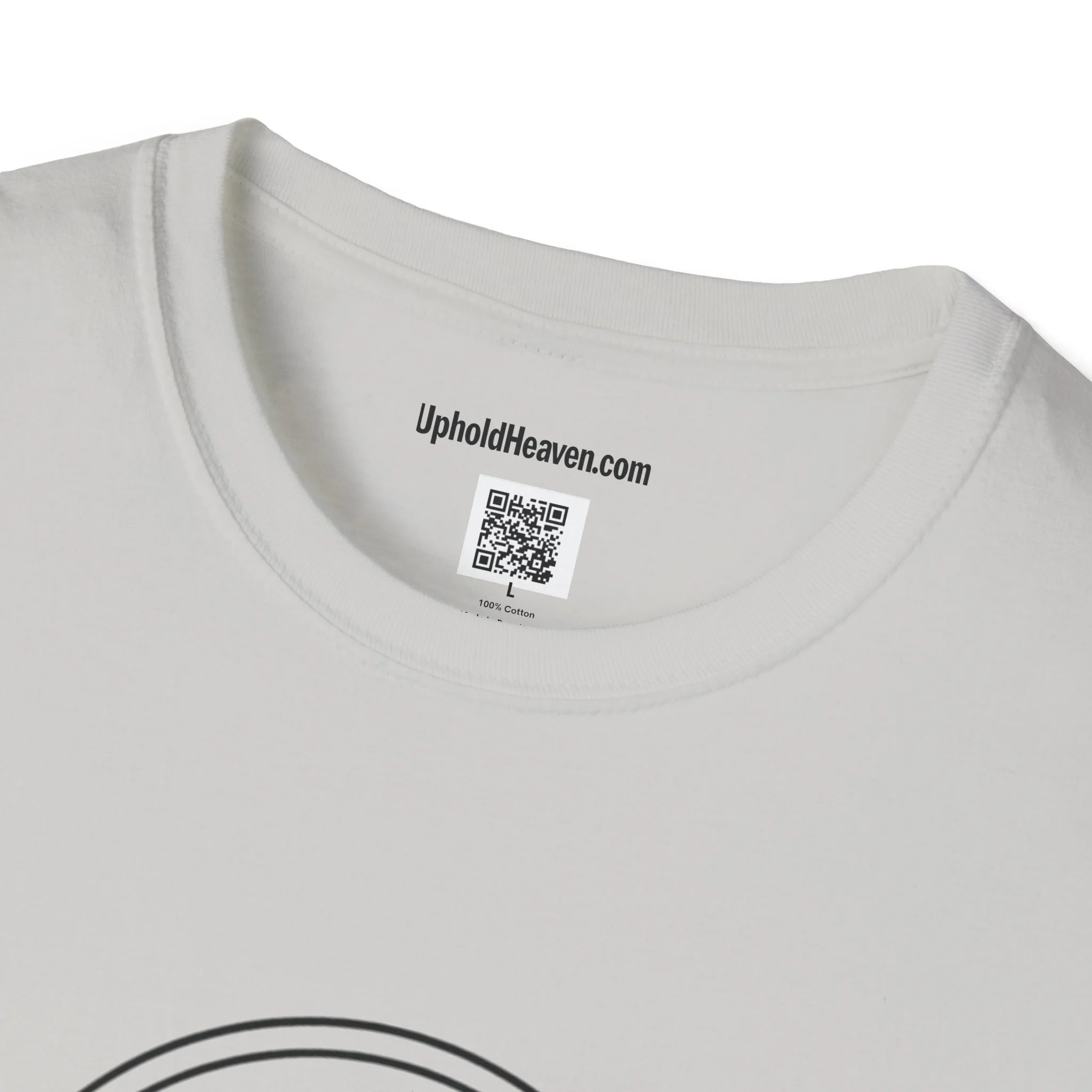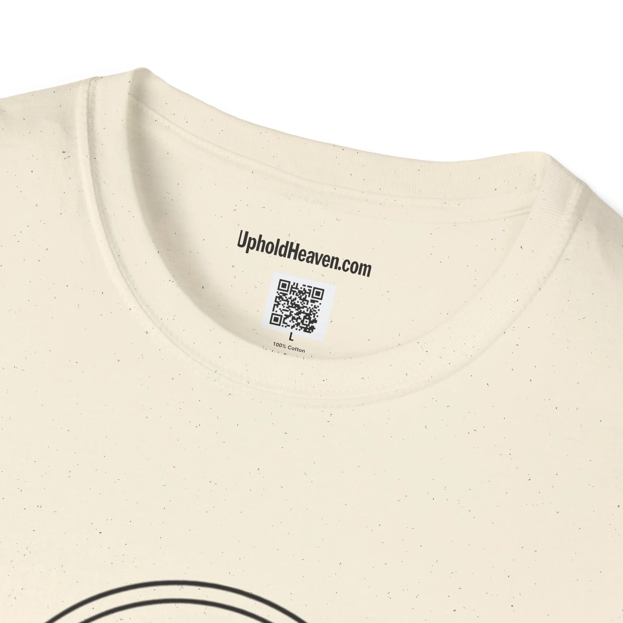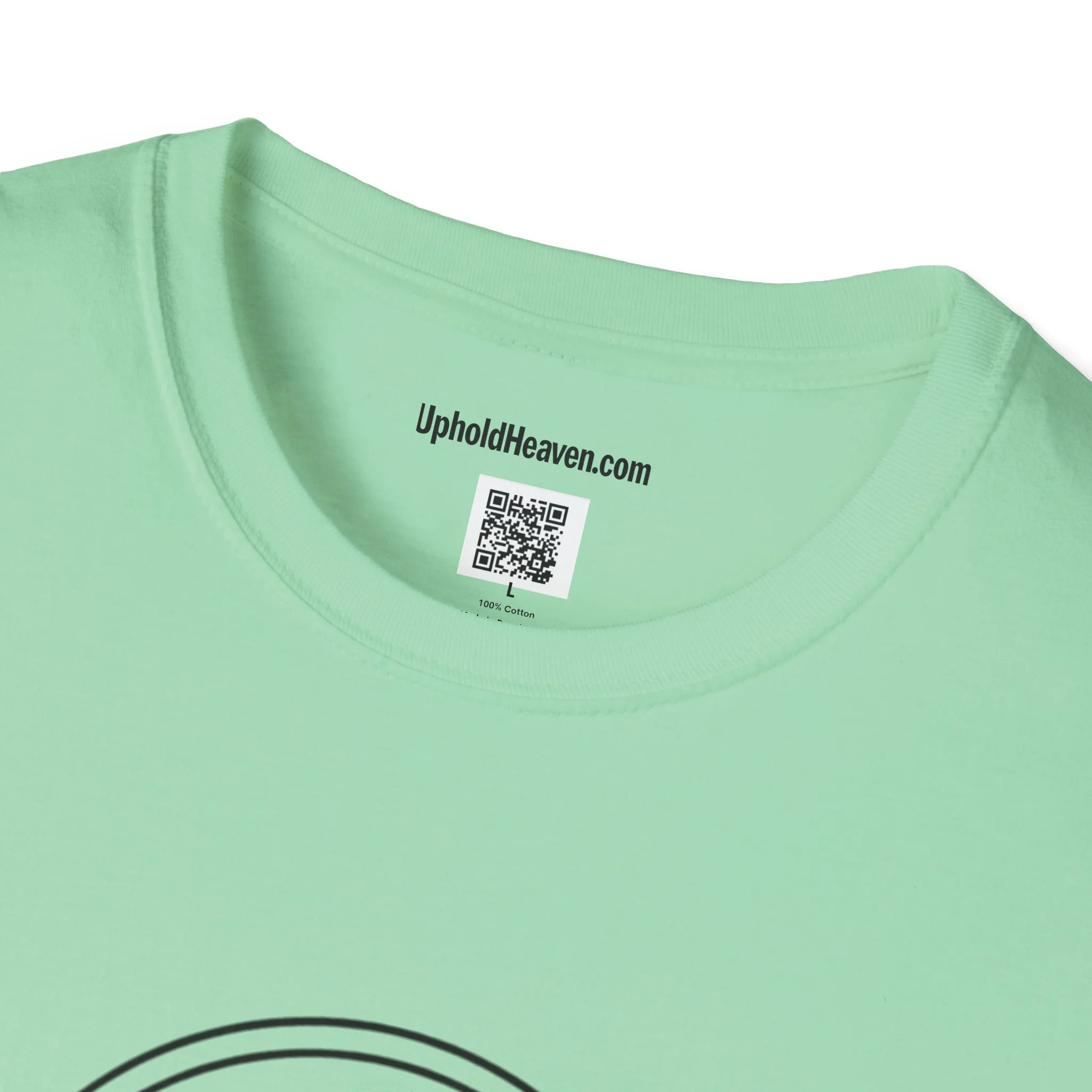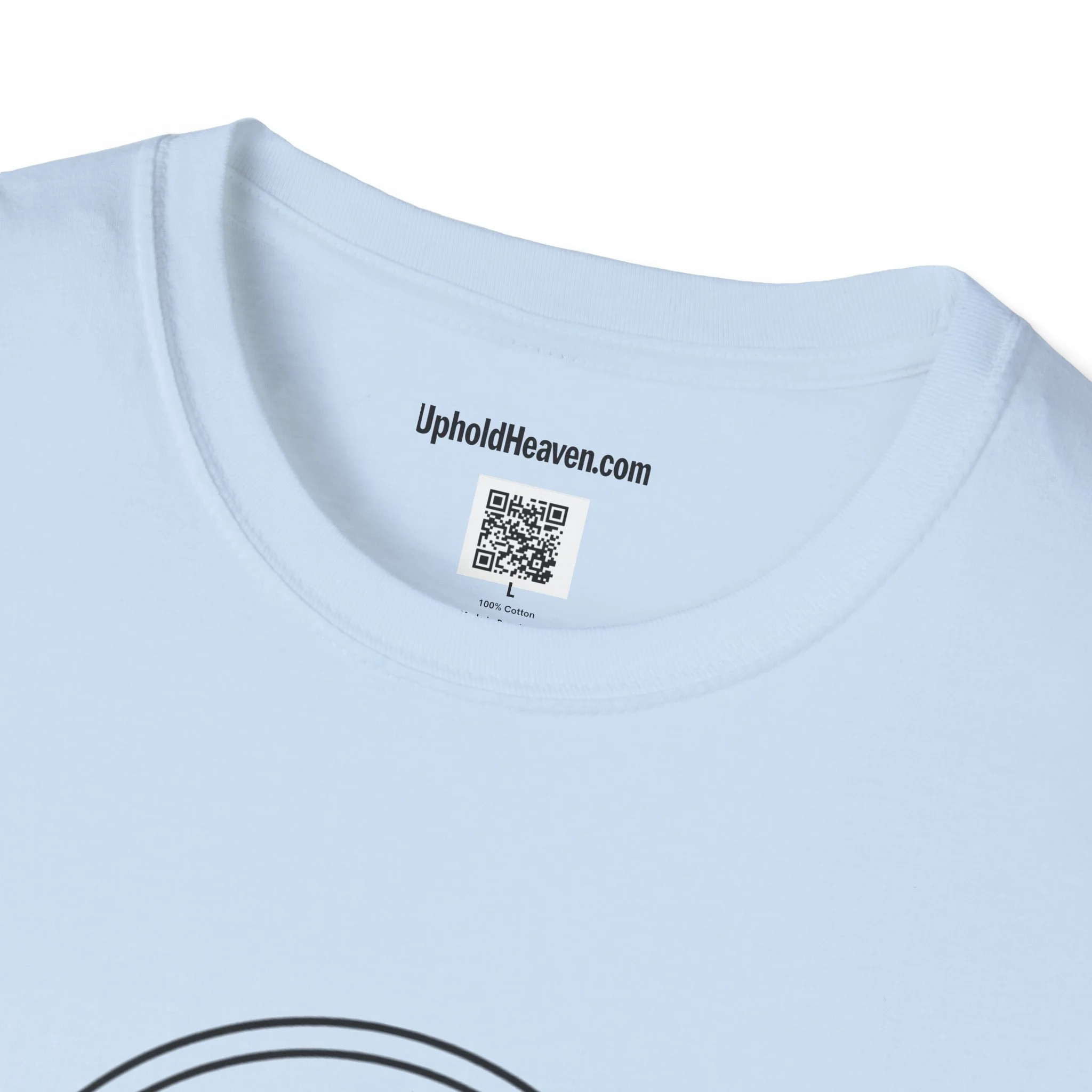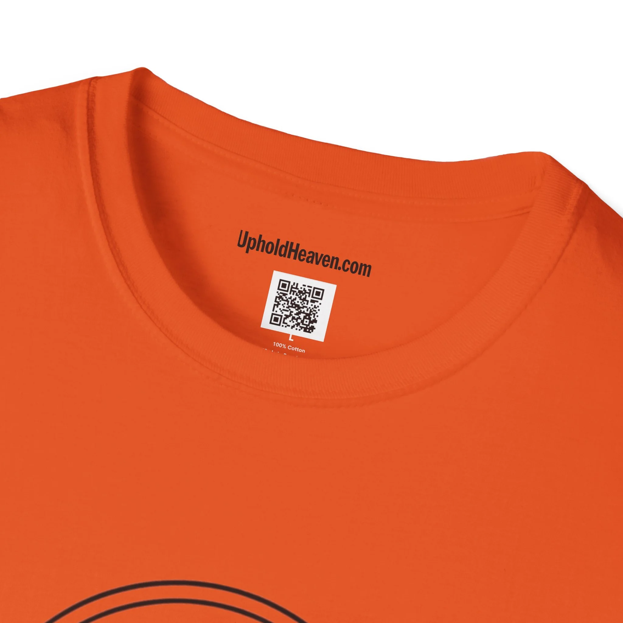 - Front emblem with minimalist cross; bold, multi-color back print with Gospel message