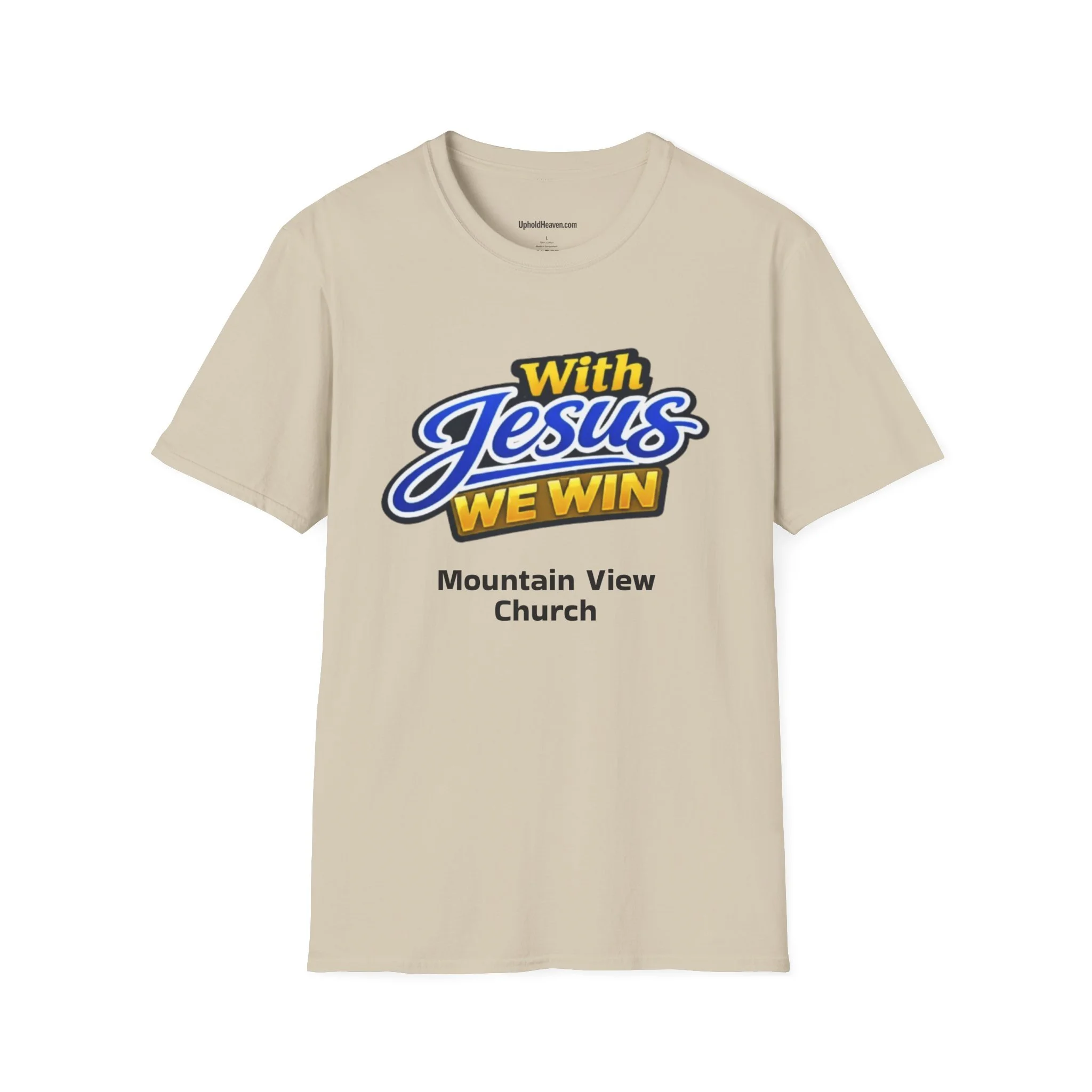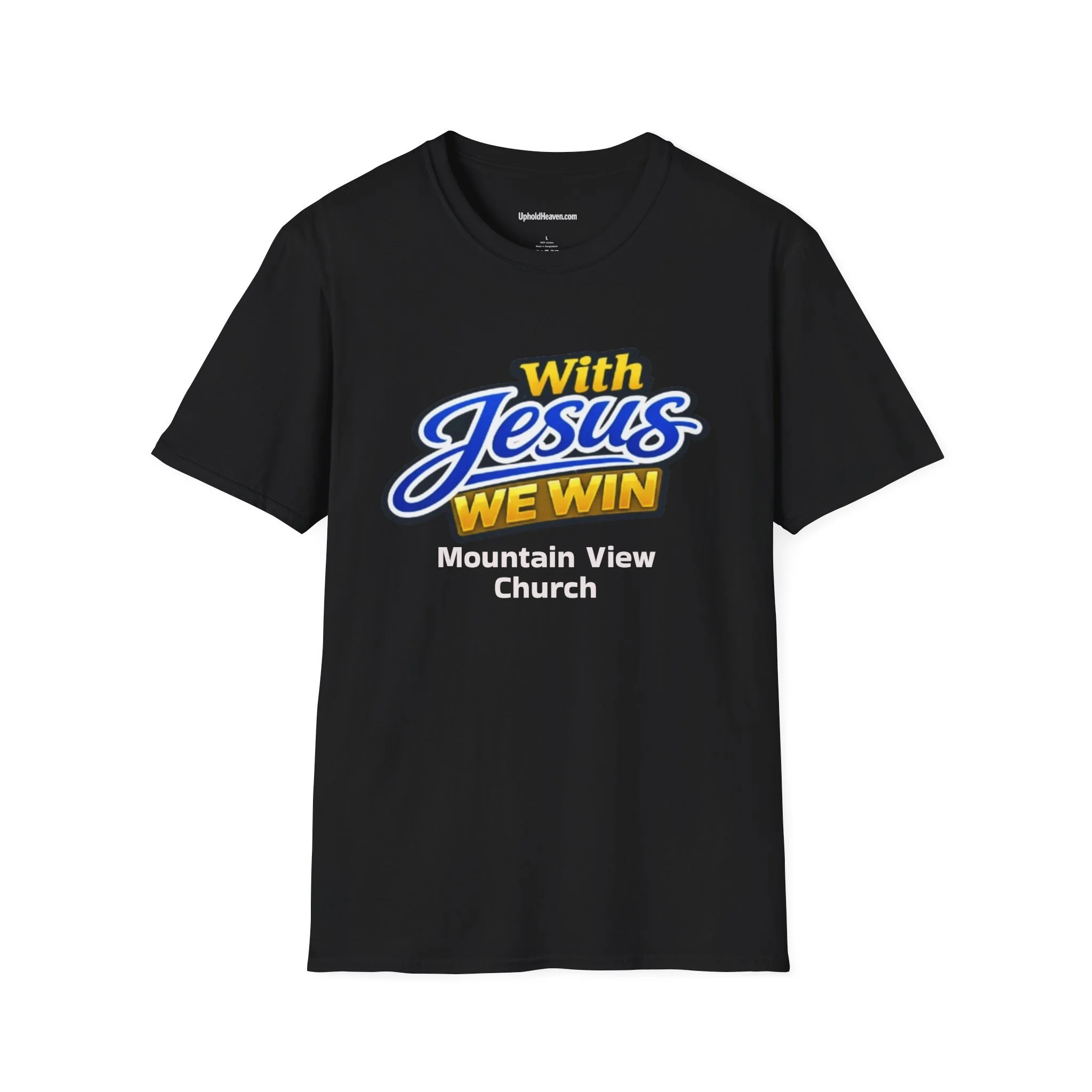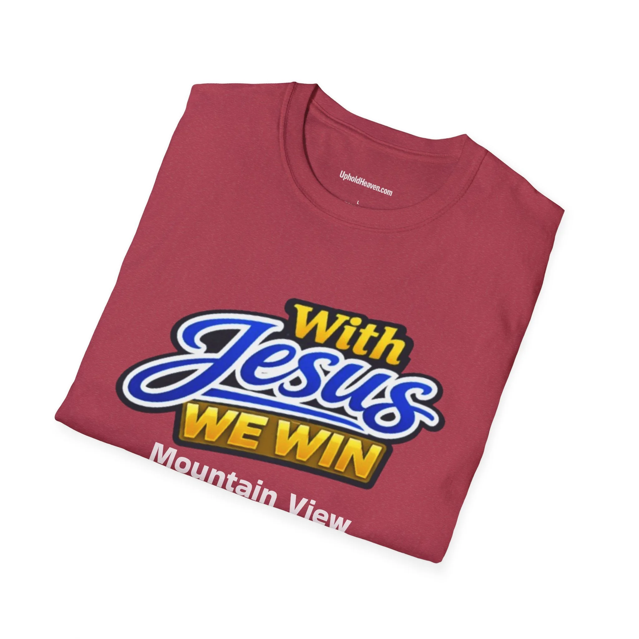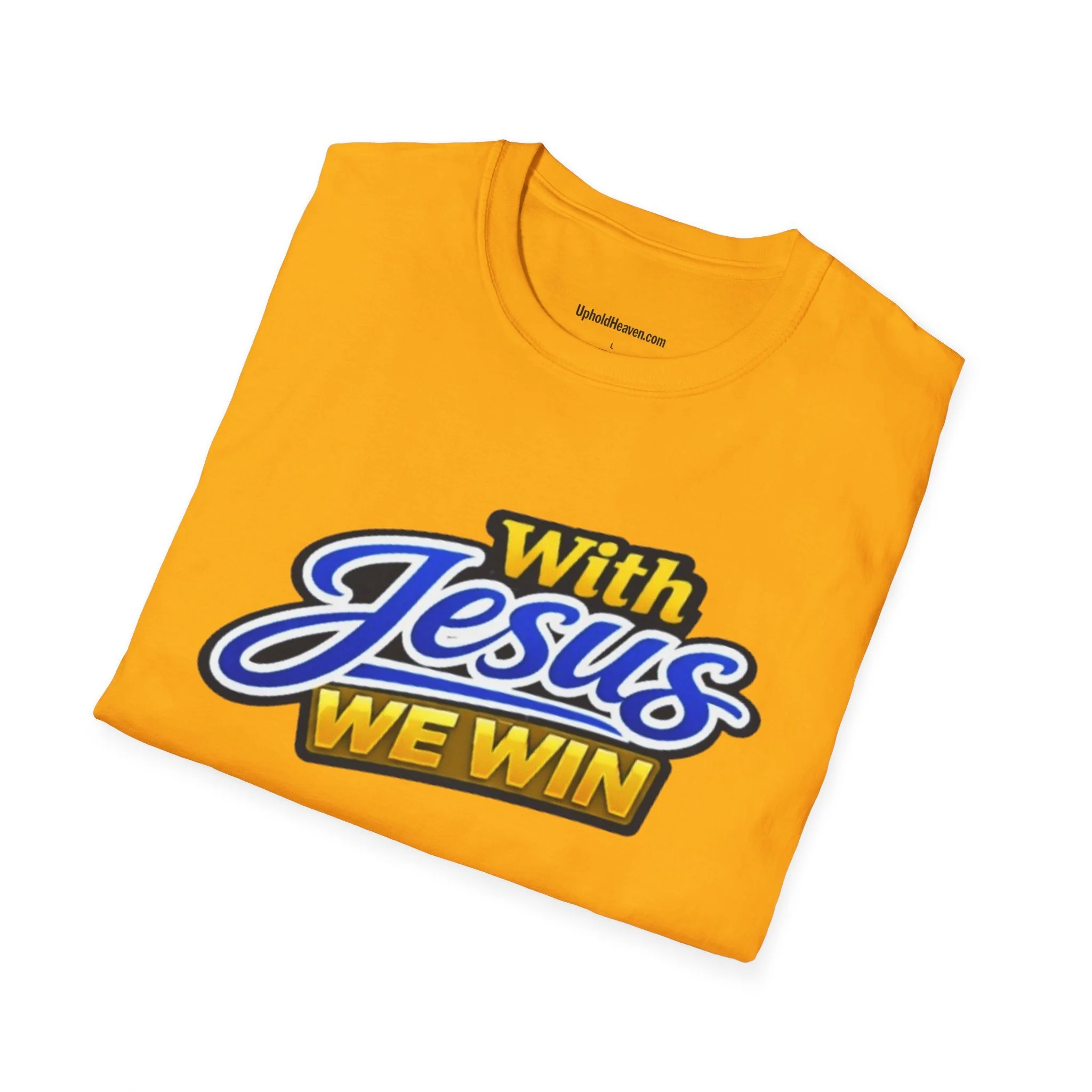 T-Shirt — "With Jesus We Win" on the front Christian Faith Tee