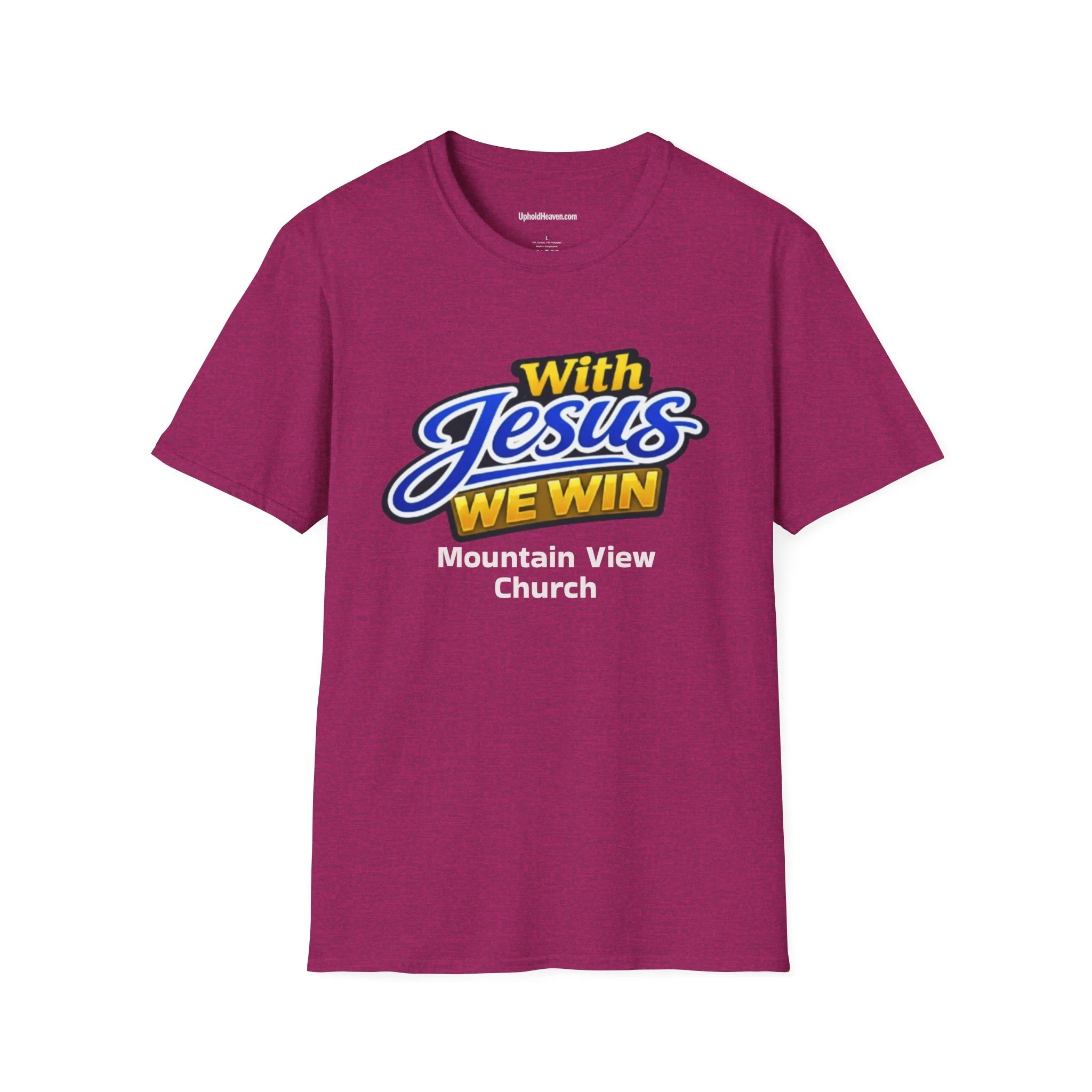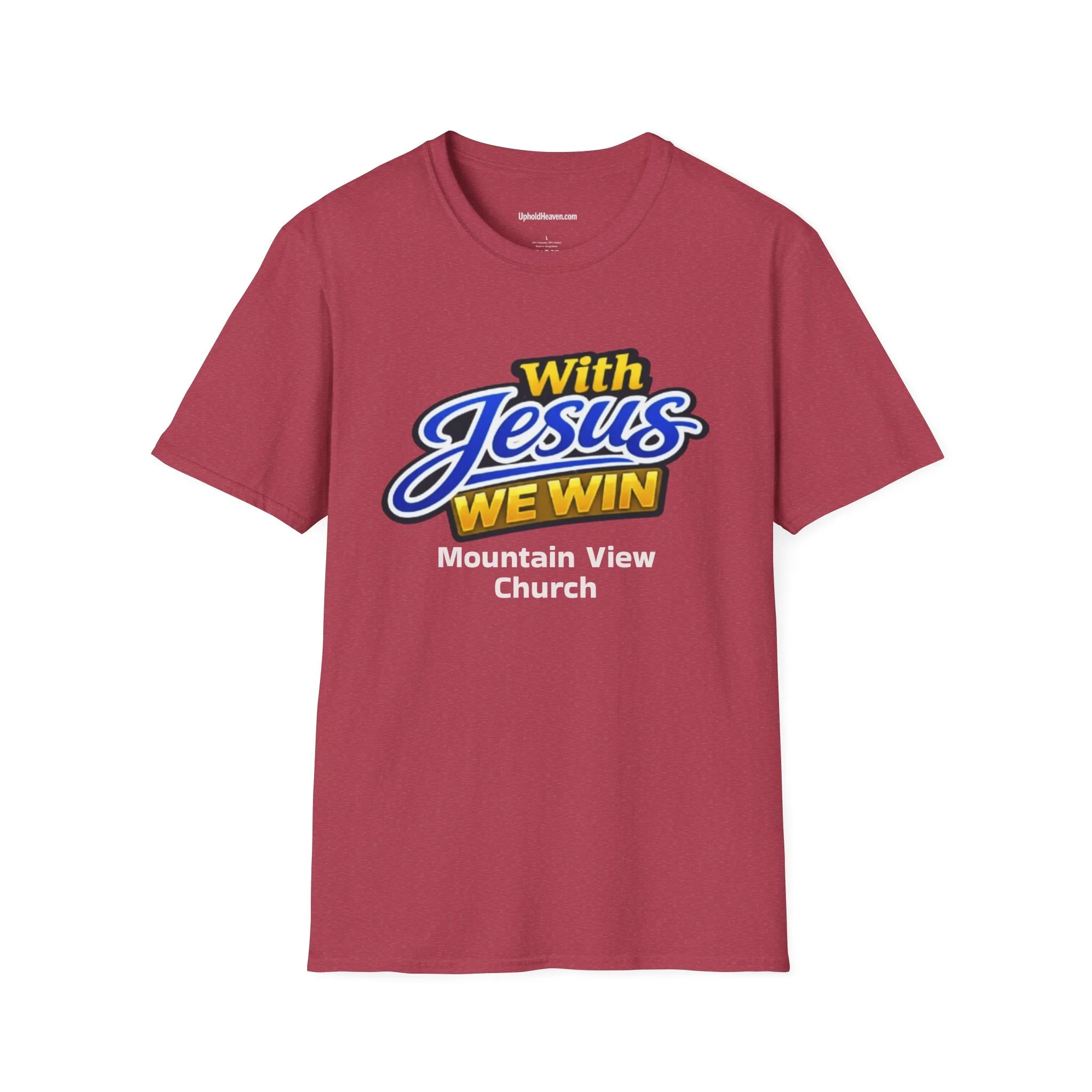 This lightweight crewneck tee carries quiet confidence — bold, hopeful lettering up front reads “With Jesus We Win,” while the back holds a reverent circular seal and a short mission-style statement. The soft ring-spun cotton drapes comfortably for everyday wear, whether you’re greeting friends after service, leading a small group, or volunteering at outreach. It’s built to move with you: stable shoulders, a resilient ribbed collar, and a smooth, tear-away label for itch-free comfort. The design speaks plainly of faith and community, making the shirt a steady companion at worship nights, church retreats, youth events, and casual fellowship gatherings.